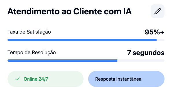 Atendimento ao Cliente de Alto Nível. Agentes de IA resolvem as demandas dos seus clientes instantaneamente, garantindo disponibilidade 24 horas por dia, 7 dias por semana e alcançando taxas de satisfação consistentemente acima de 95%