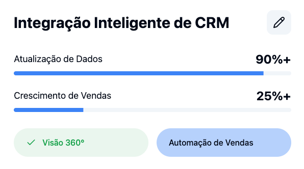 Otimização de Processos via CRM. Promovemos a automação e integração inteligente de ponta a ponta, usando o CRM como hub central. O resultado é a máxima eficiência operacional, uma drástica redução de custos e dados limpos para decisões estratégicas